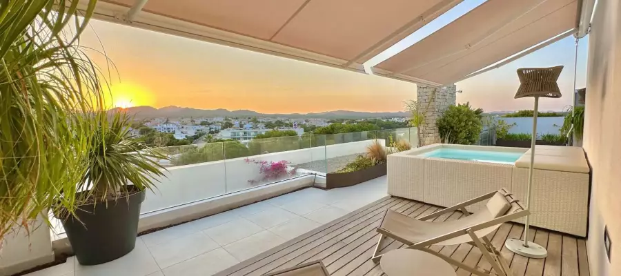 Dieses Neubau-Penthouse ist Teil einer exklusiven Anlage nahe der Küste von Sa Rapita und überzeugt mit einer großzügigen Dachterrasse mit Meerblick und Loungebereich für mediterranes Inside-out Living. »