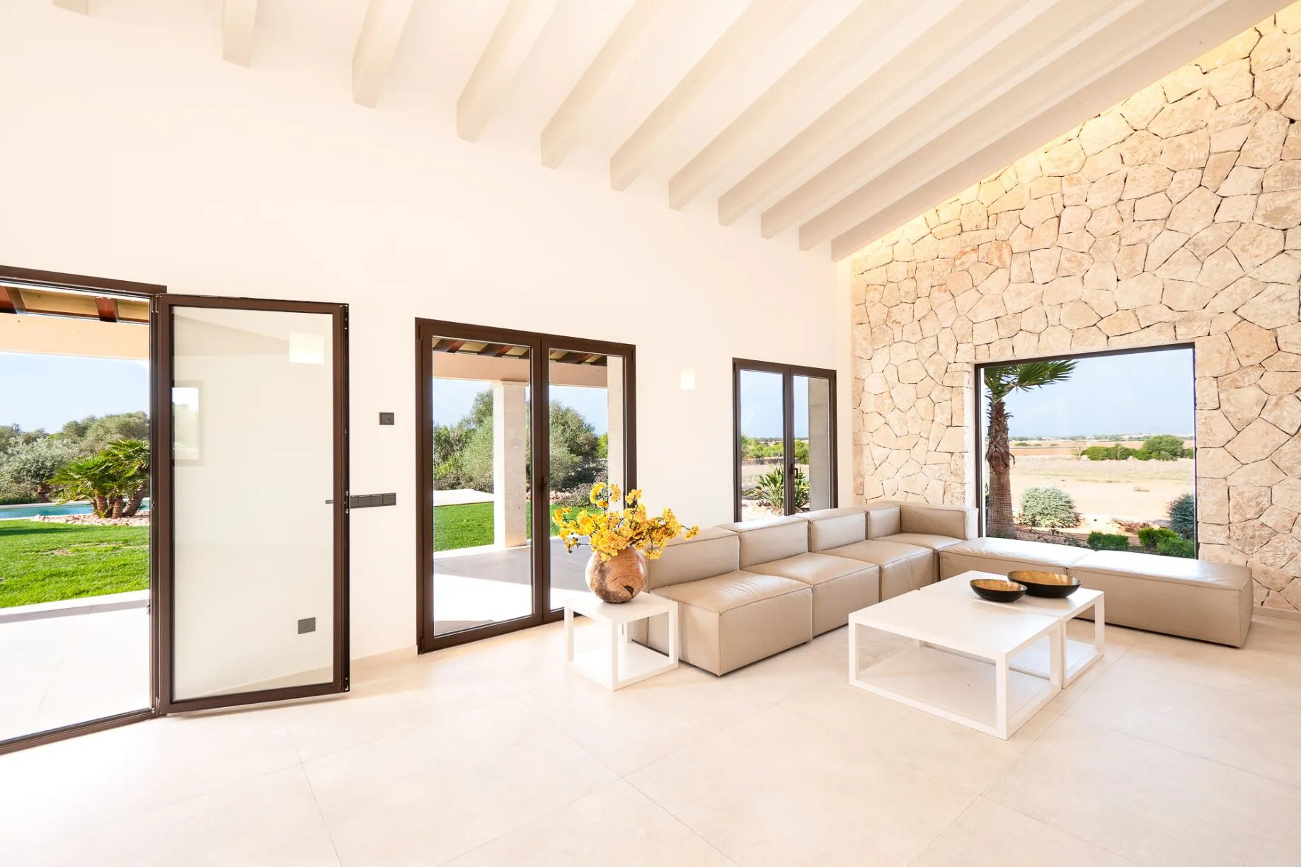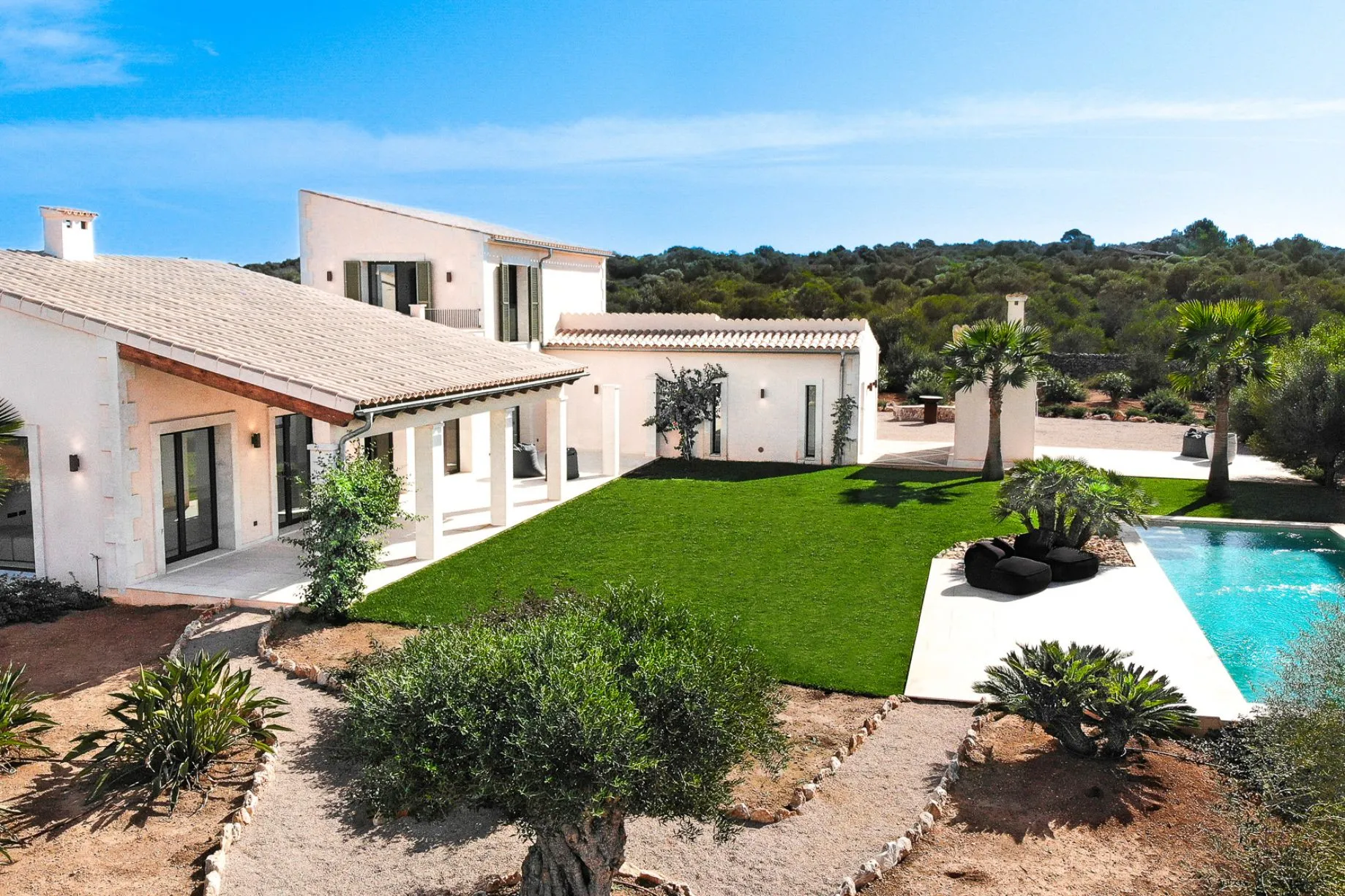 Mediterrane Neubau-Finca mit Panoramablick, Pool, Sauna und Fitnessbereich, nahe Traumstrand Es Trenc