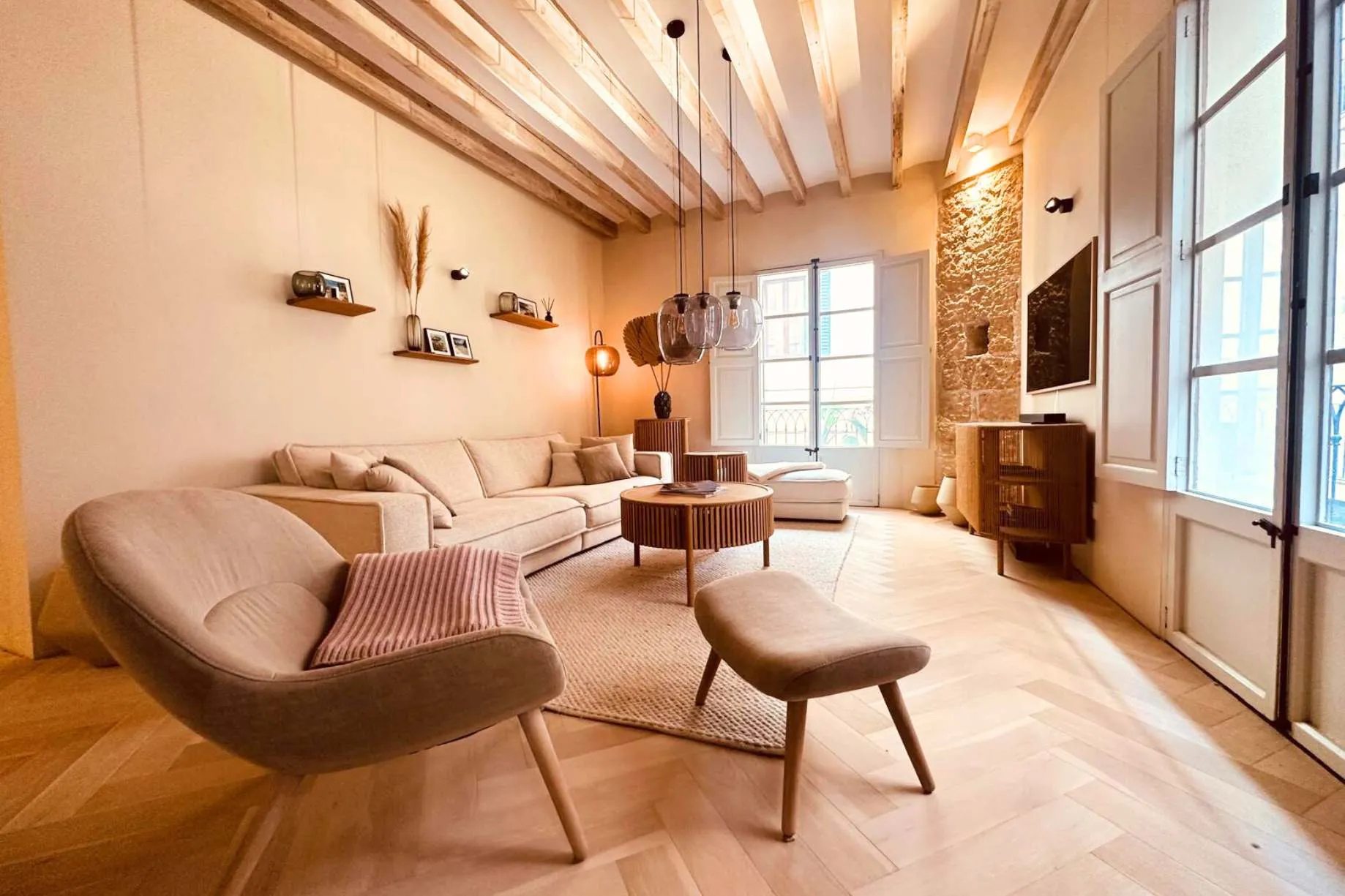 Mehrere französische Balkone durchfluten die Räume mit natürlichem Tageslicht und bieten einen Blick auf die malerischen Gassen.
