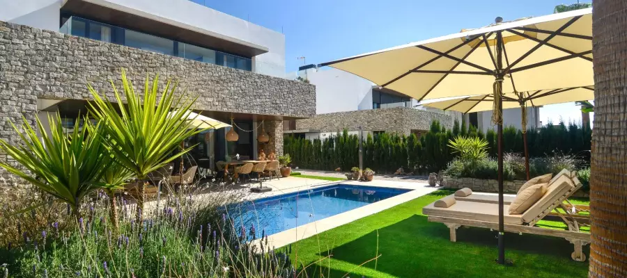 Diese Neubau-Villa in dem kleinen Küstenort Sa Ràpita verkörpert das mediterrane Lebensgefühl in seiner schönsten Form. Mit einem gelungenen Mix aus modernem Design und gemütlichem Wohlfühl-Charme bietet sie alles, um einen erholsamen Urlaub zu verbringen.